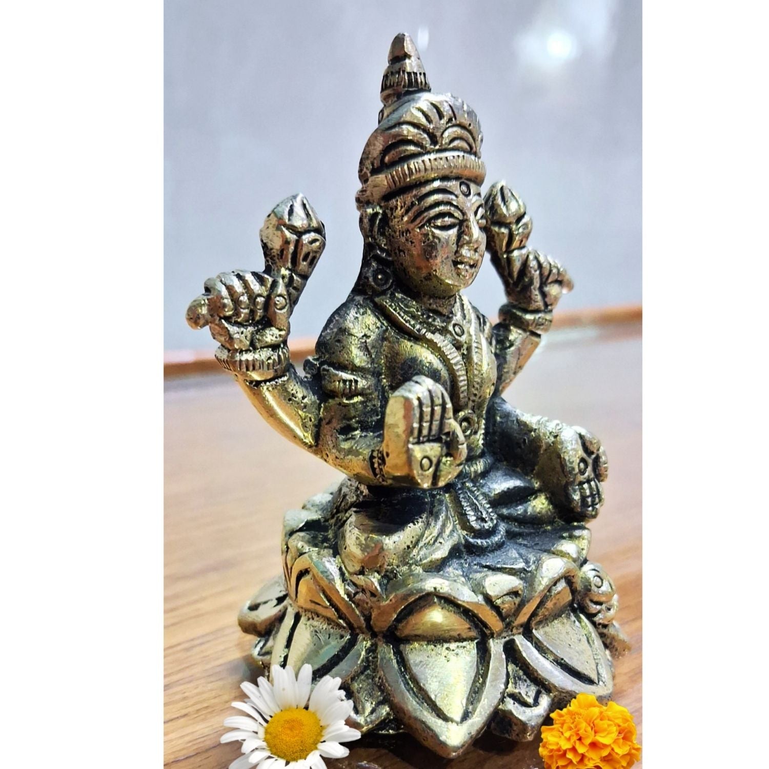✅ Design: Handcrafted Maa Lakshmi standing gracefully on lotus with intricate detailing